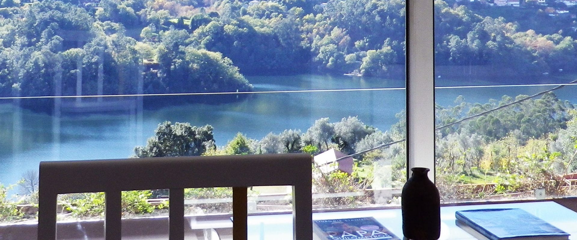 A paisagem é de cortar a respiração com uma vista desafogada sobre a albufeira da Caniçada.